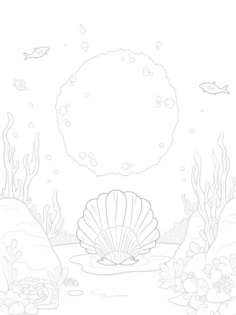 If you peek around, you’ll find a treasure chest half-buried in the sand, spilling over with shiny pearls and pretty sea glass. It’s a perfect spot for imaginative coloring! And don’t forget to notice the lively fish darting between the rocks, bringing even more energy to this serene underwater world.