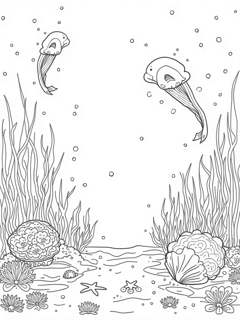 Underwater Meadow with Dolphins and Jellyfish Coloring Page