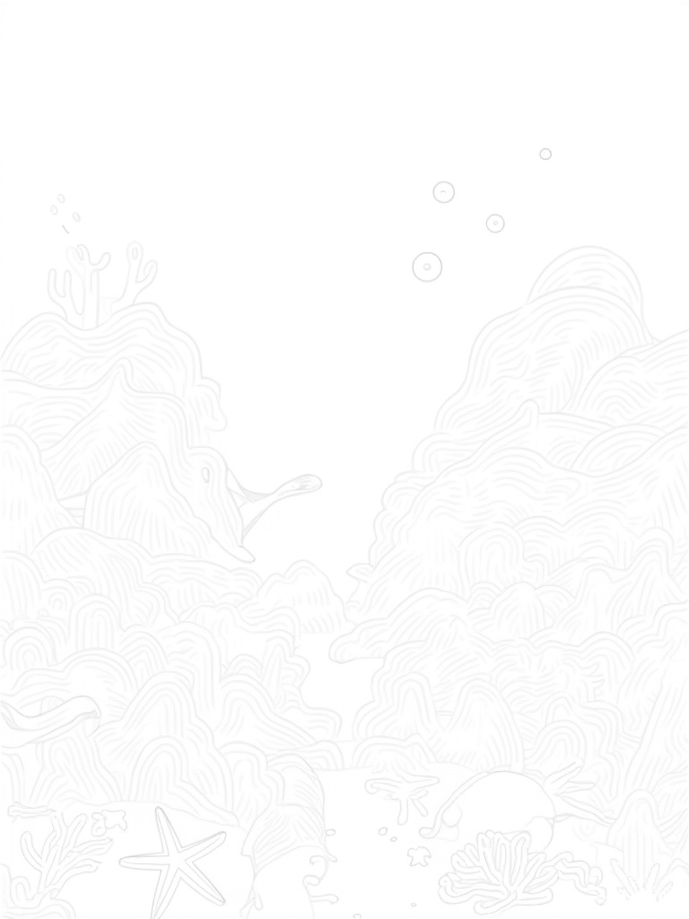 Above the dolphins, there’s an old shipwreck resting against some rocks. Its weathered planks are now home to lively anemones and curious fish peeking out. The whole scene is filled with bubbles drifting upwards, creating a peaceful rhythm in the tranquil blue water. It’s a perfect spot for little artists to let their creativity flow!