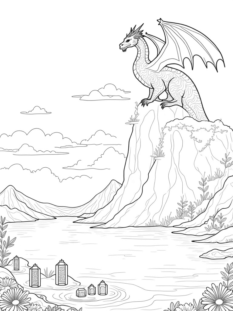 Check out this free, printable coloring page featuring a colossal cloud dragon! Perfect for kids who enjoy dragons, this design includes a tranquil lake and glowing lanterns, making it an exciting addition to any coloring book collection.