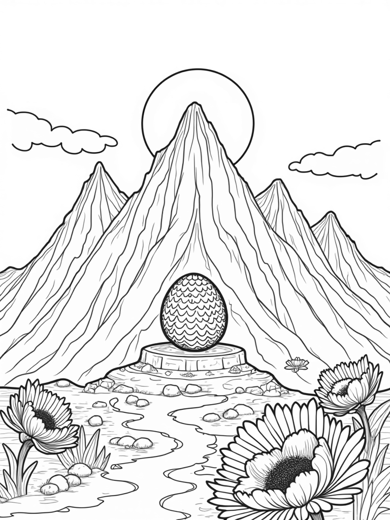 Dragon Scale Mountain Range with a Giant Egg Coloring Page