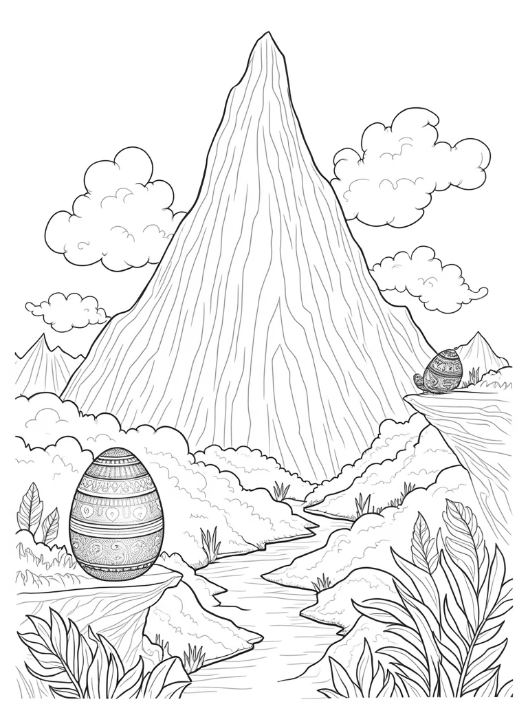 Dragon's Head Mountain with a Mystical Egg Coloring Page