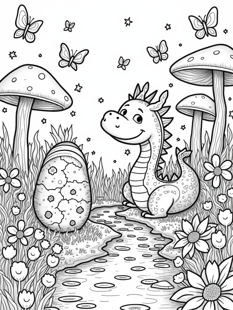 Check out this free, printable coloring page featuring a friendly dragon in a magical garden! It's perfect for kids who love dragons and nature. Grab your crayons and bring this whimsical scene to life!