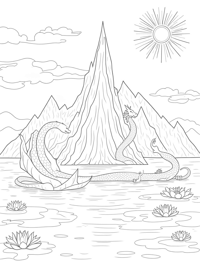 Check out this free printable coloring page featuring a majestic dragon coiled around a crystalline mountain. Perfect for kids who love dragons and creative coloring adventures!