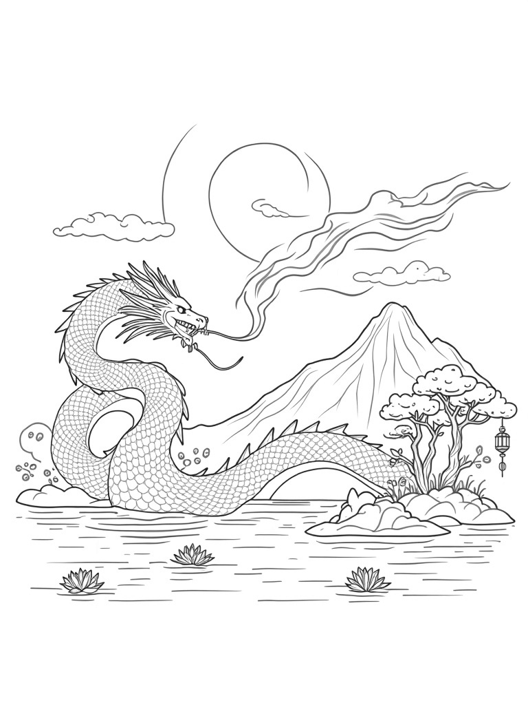 Check out this free, printable coloring page featuring a majestic dragon coiled around a mountain peak. It's perfect for kids who love dragons and want to add a splash of color to their day!