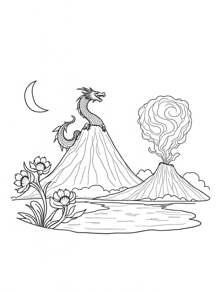 Majestic Dragon Coiled Around a Mountain Peak Coloring Page