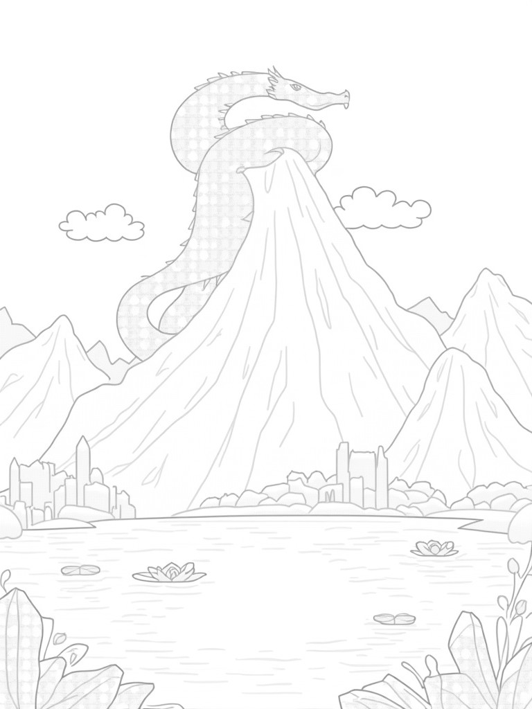 Majestic Dragon Coiled Around a Mountain Peak Coloring Page