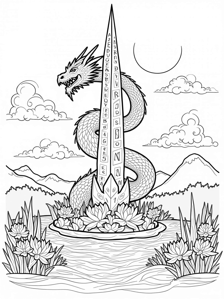 Majestic Dragon Coiled Around Crystal Spire Coloring Page
