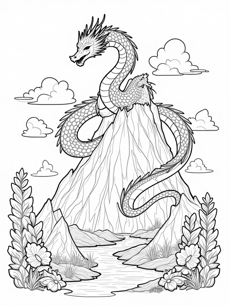 Majestic Dragon Coiling Around a Mountain Peak Coloring Page