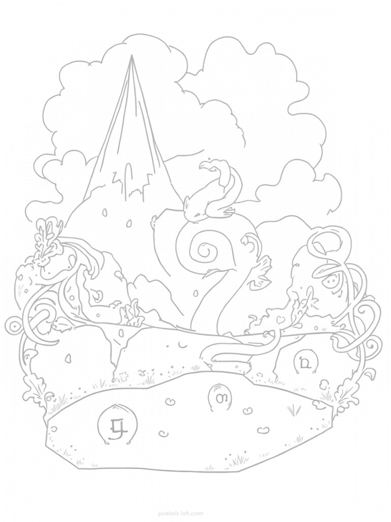 In the foreground, you'll find intricate vines wrapped around ancient stones, covered in mysterious runes. These details offer a fun challenge for your coloring skills! And don't forget to look up at the wispy clouds forming a spiral above, perfectly framing the dragon's magnificent wings as they stretch wide. There's so much to color and explore!