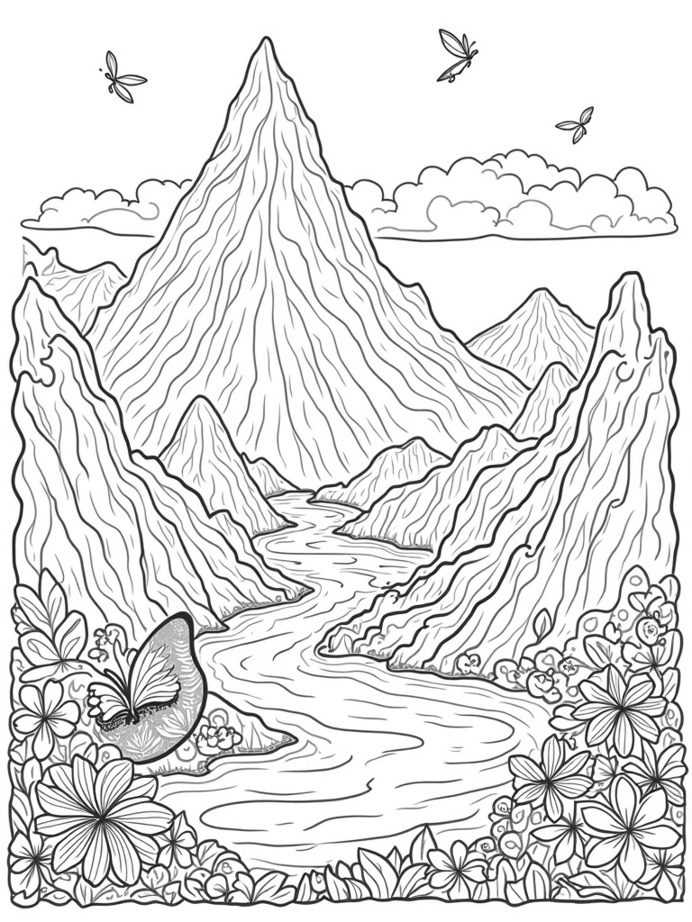 Check out this free, printable coloring page featuring majestic mountains shaped like dragon wings, a hidden dragon egg, and fluttering butterflies. Perfect for kids who love dragons and magic!