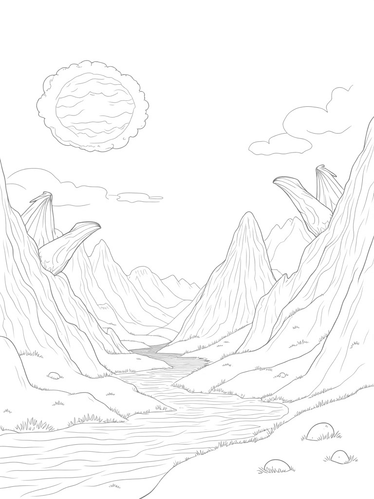 Grab your favorite crayons, markers, or colored pencils and bring this magnificent landscape to life. With its detailed outlines and minimal shading, this coloring page is designed for kids of all ages to enjoy. Happy coloring!