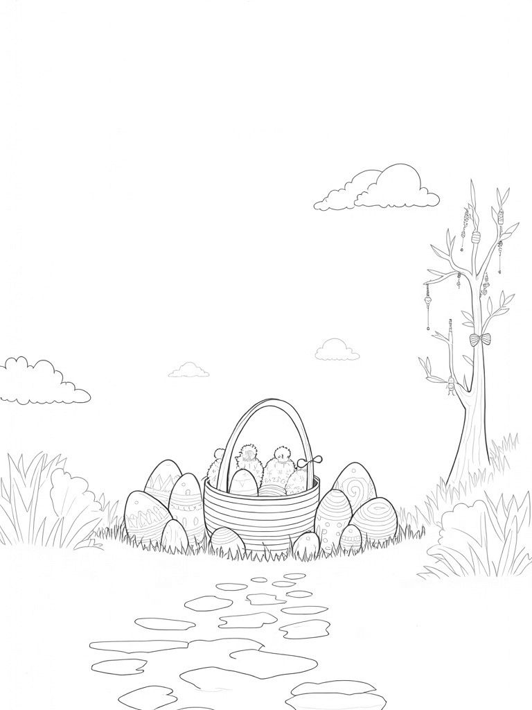 Check out this free, printable coloring page featuring a whimsical garden filled with colorful eggs and giant flowers. Perfect for Easter bunny fun, this design will spark creativity and joy in kids as they color!