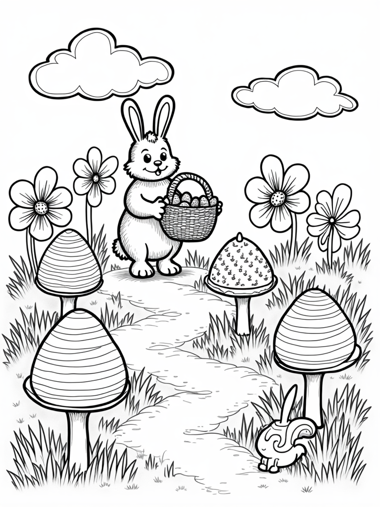 Check out this free, printable coloring page featuring a whimsical garden with giant colorful eggs and a smiling Easter bunny. Perfect for kids who love to color and get creative during Easter time!