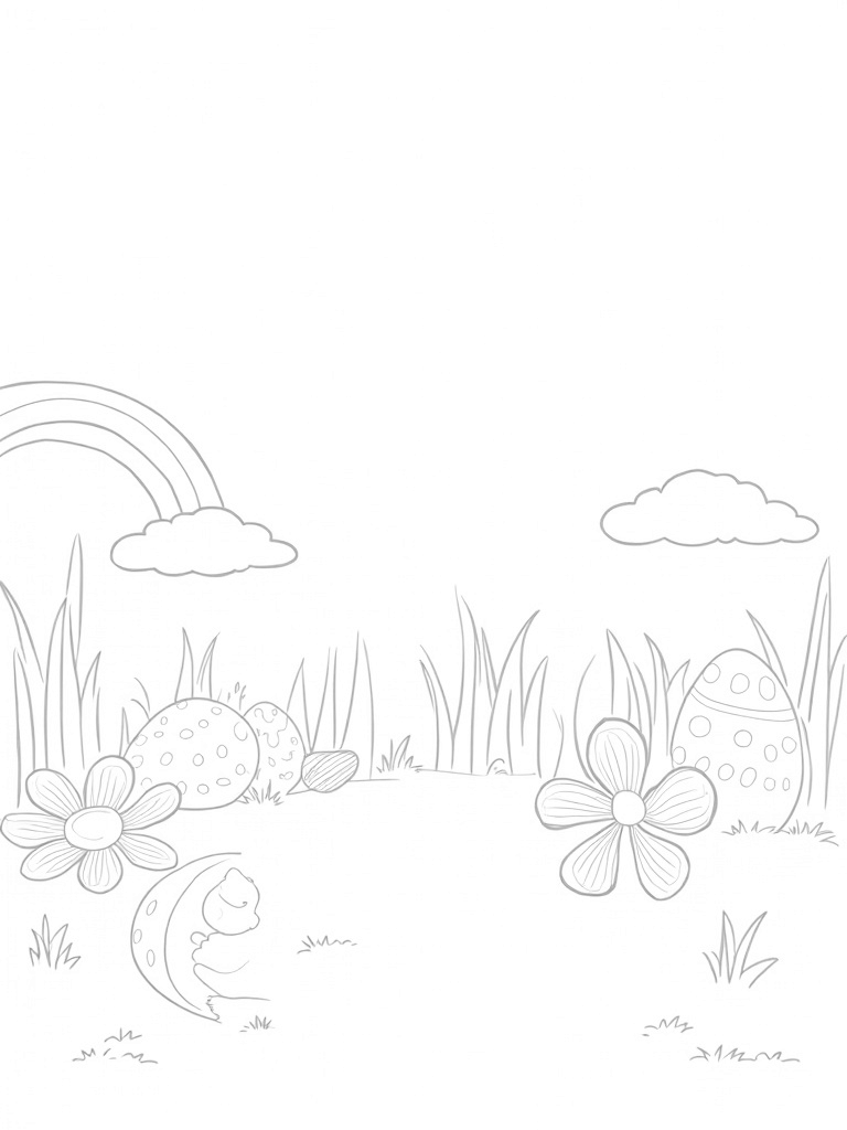 Oversized Easter Eggs in a Colorful Meadow Coloring Page