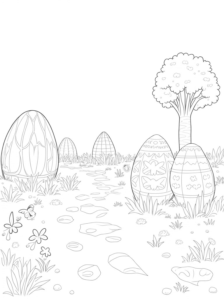 Oversized Easter Eggs in a Magical Garden Coloring Page