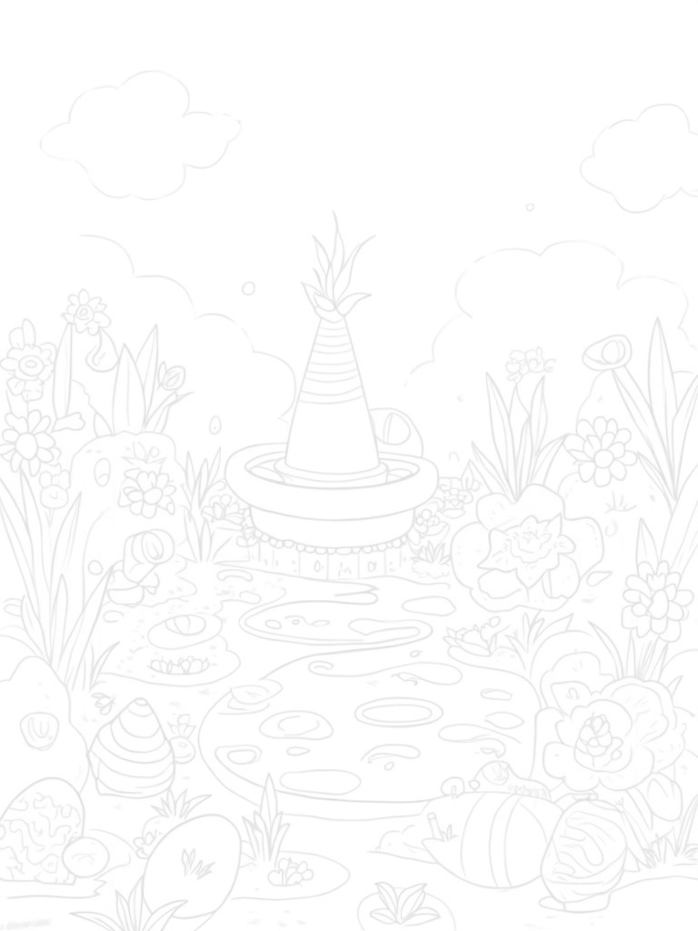 Oversized Eggs and a Carrot Fountain in a Colorful Garden Coloring Page