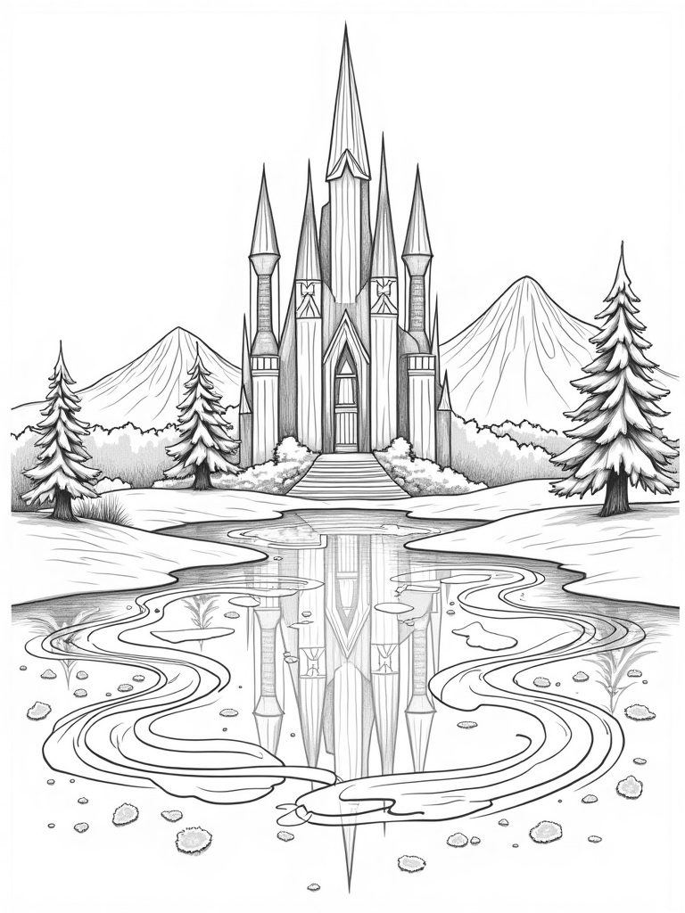 Crystalline Palace in a Winter Wonderland Coloring Page