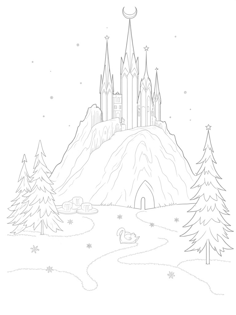 Crystalline Palace on a Snowy Mountain Coloring Page