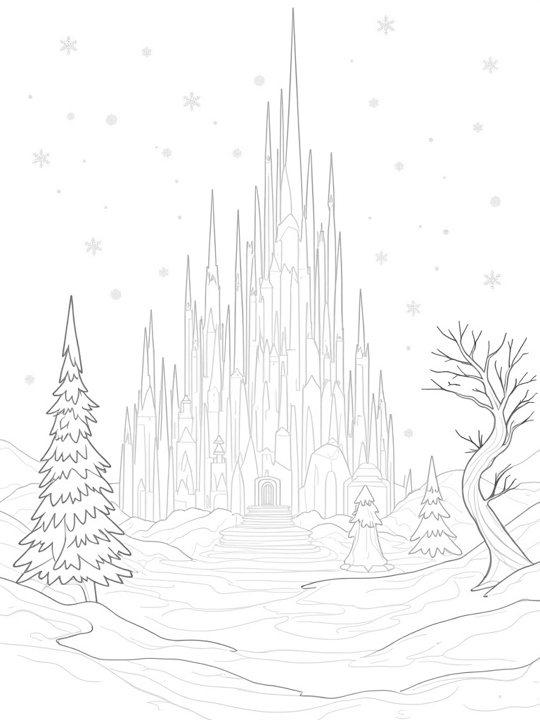 Enchanted Ice Palace with Crystal Spires Coloring Page