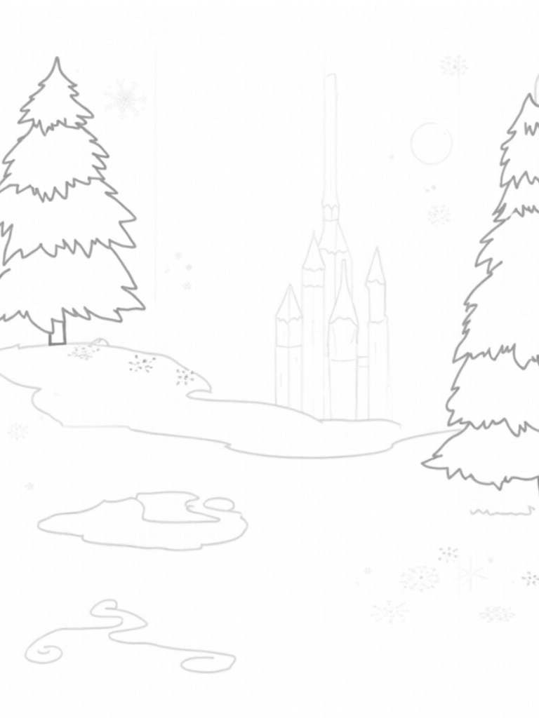 Frozen Forest with Majestic Ice Castle Coloring Page