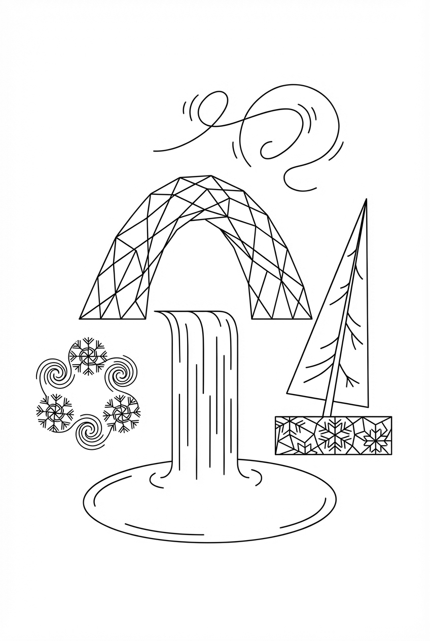 If you love playing with blues and whites, start by shading the waterfall and pond with light blues and a touch of gray for depth. The aurora swirl is a great spot for some bright greens or pinks—just keep the strokes simple to match the line art. For the pine, a mix of dark green and maybe a hint of teal works well, and don’t forget to add tiny specks of silver to the snowflake mosaic for extra sparkle.