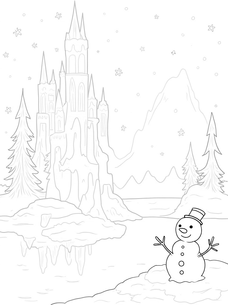 Ice Castle Under the Starry Sky Coloring Page