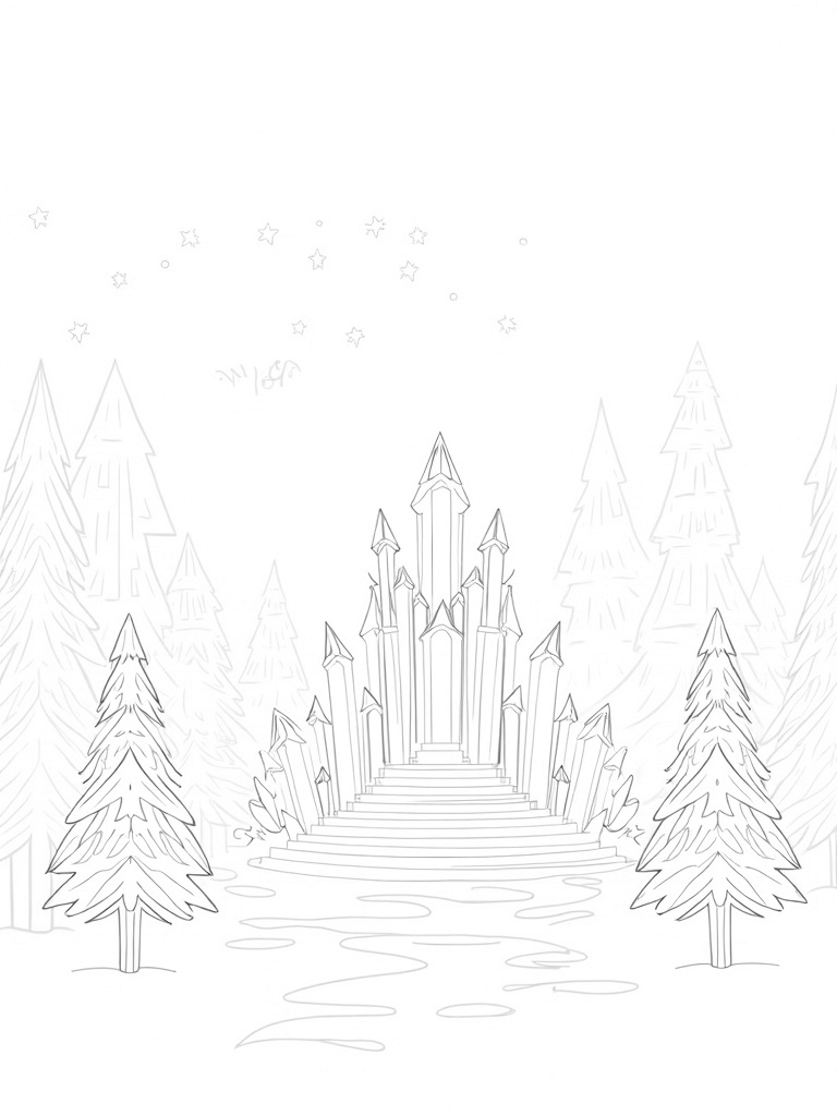 Magical Ice Palace with Crystalline Throne Coloring Page