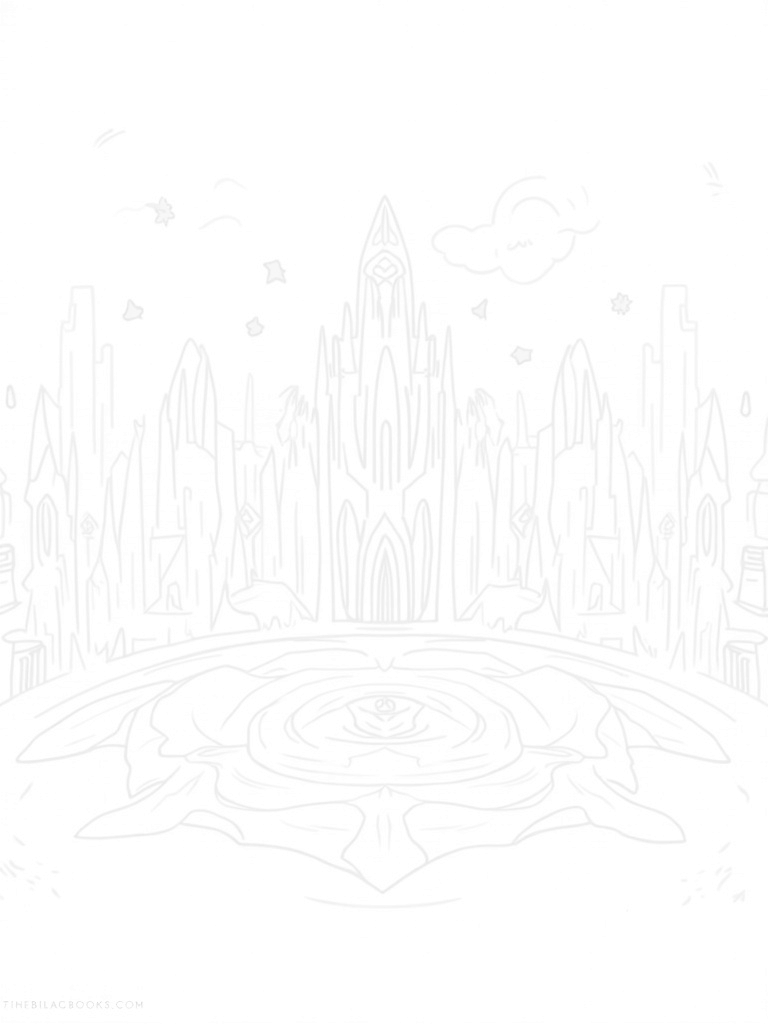 This enchanting scene showcases a vast frozen landscape where towering ice crystals rise like nature's sculptures. In the foreground, you’ll find a beautiful swirling snowflake pattern that creates a lovely mandala, perfect for adding your favorite colors. Nearby, a shimmering ice palace stands proud, complete with intricate spires and arched windows that sparkle in the sunlight.