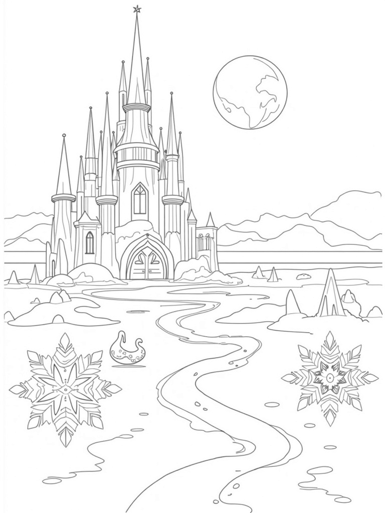 Majestic Ice Castle with Intricate Ice Sculptures Coloring Page