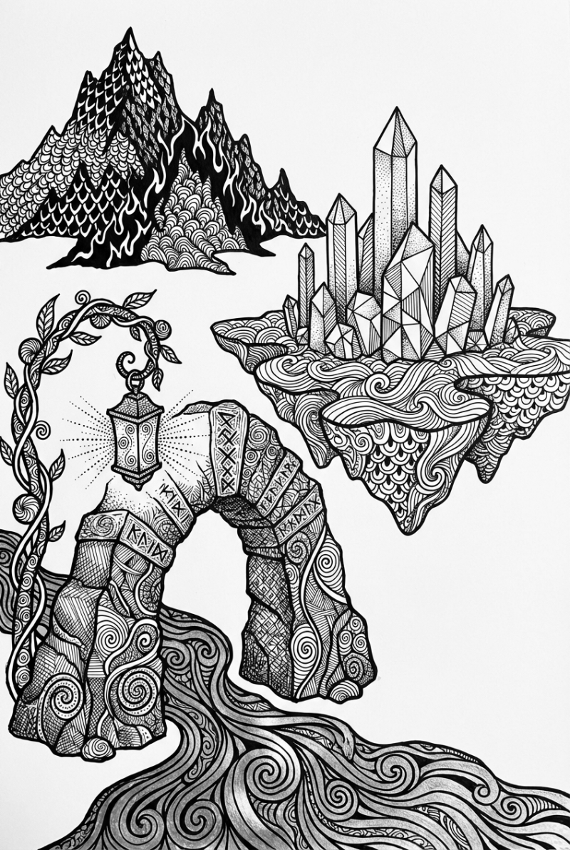 Try using cool blues and purples for the floating islands, then switch to warm silvers and golds for the river to make it pop. The lantern and moss work great with neon greens or yellows – just a little extra shine can bring them to life. For the dragon‑shaped mountain, softer grays with a hint of purple can add depth without overwhelming the rest of the picture.