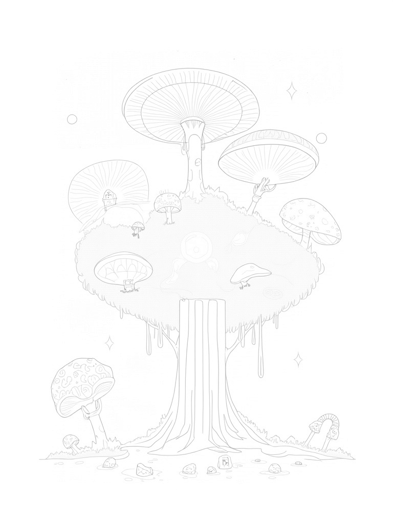 Floating Island with Spiraled Mushrooms and Glowing Tree Coloring Page