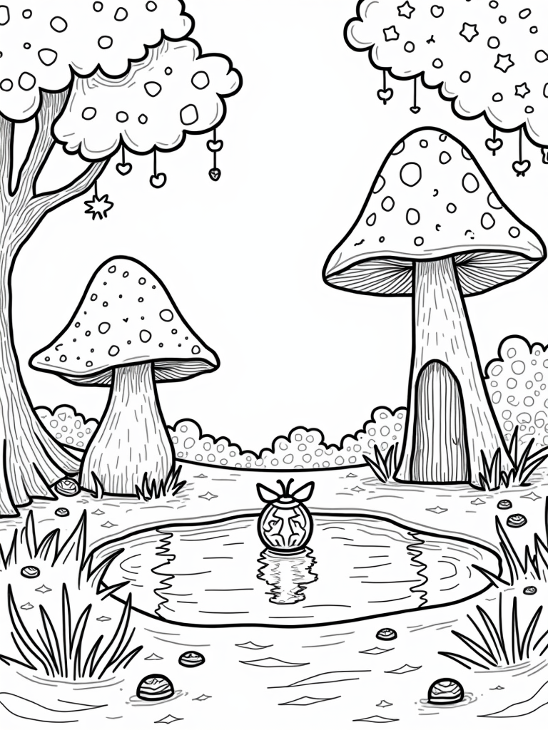 Check out this free, printable coloring page featuring a magical forest clearing with oversized mushrooms and a dragonfly lantern. Perfect for kids who love fantasy and adventure, it’s a fun way to spark creativity while coloring!
