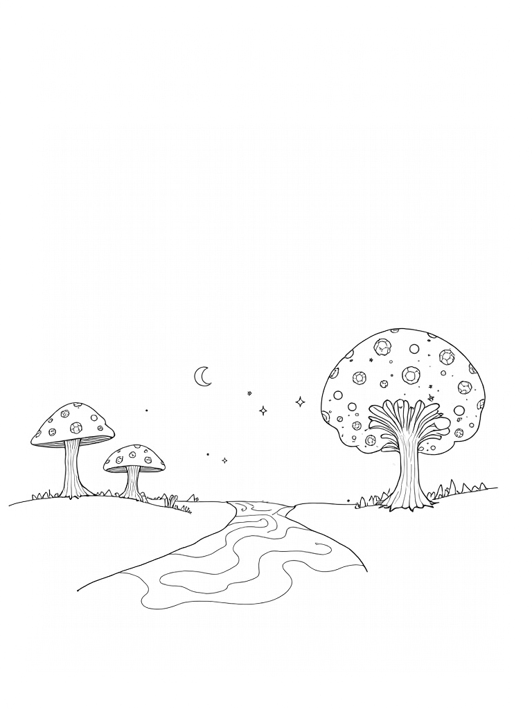 Check out this free, printable coloring page featuring a mystical forest with a river of stars. Perfect for kids who love fantasy themes, this design is ready for creative coloring fun!