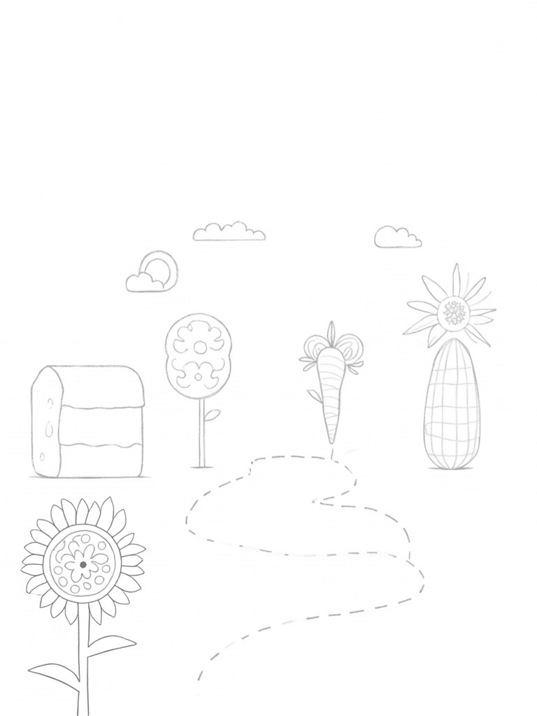 Imagine a farm where the vegetables are so big they look like they're trying to take over the place! A giant carrot stands proudly next to a winding straw path that leads to a barn shaped like a big slice of cheese. How cool is that? Fluffy clouds shaped like cute farm animals float by, making the sky feel like a fun playground.