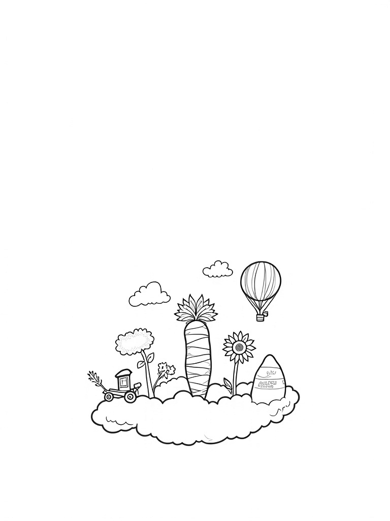 Floating Farmyard with Spiraling Carrot Tower Coloring Page
