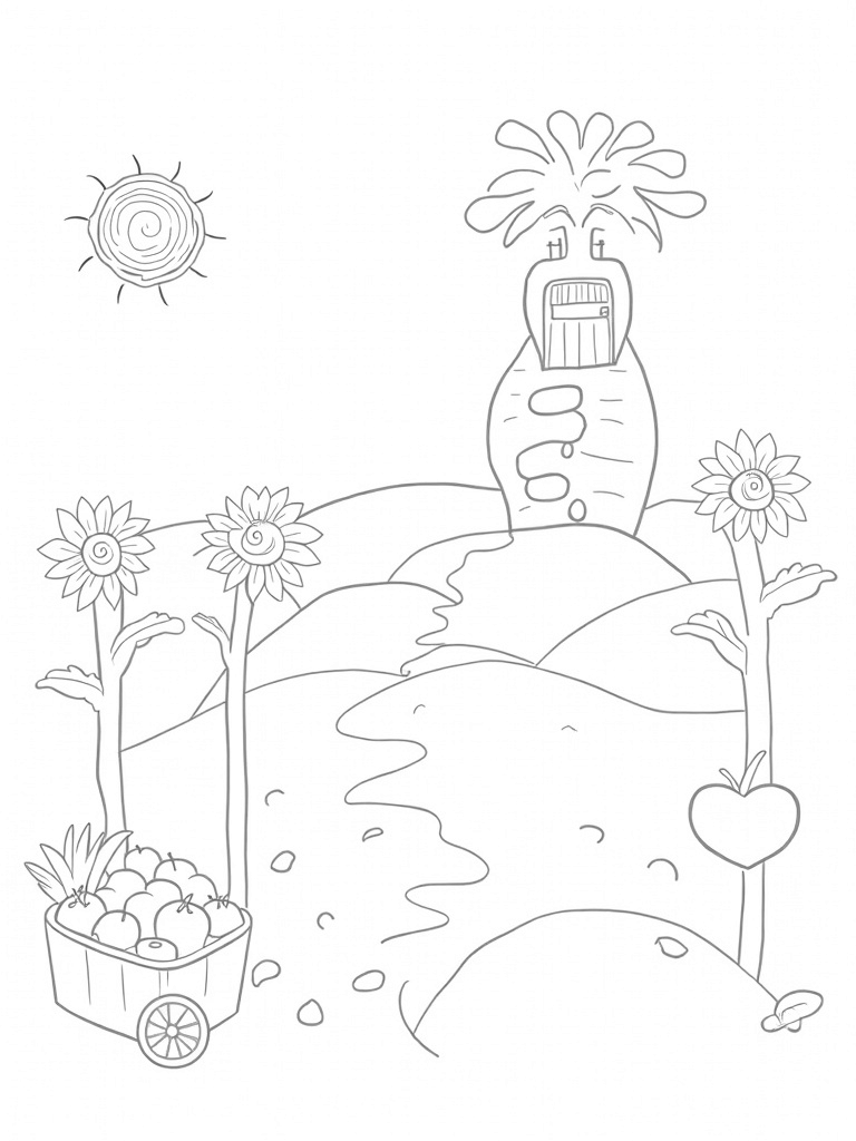 Giant Vegetables and a Cozy Treehouse on the Farm Coloring Page