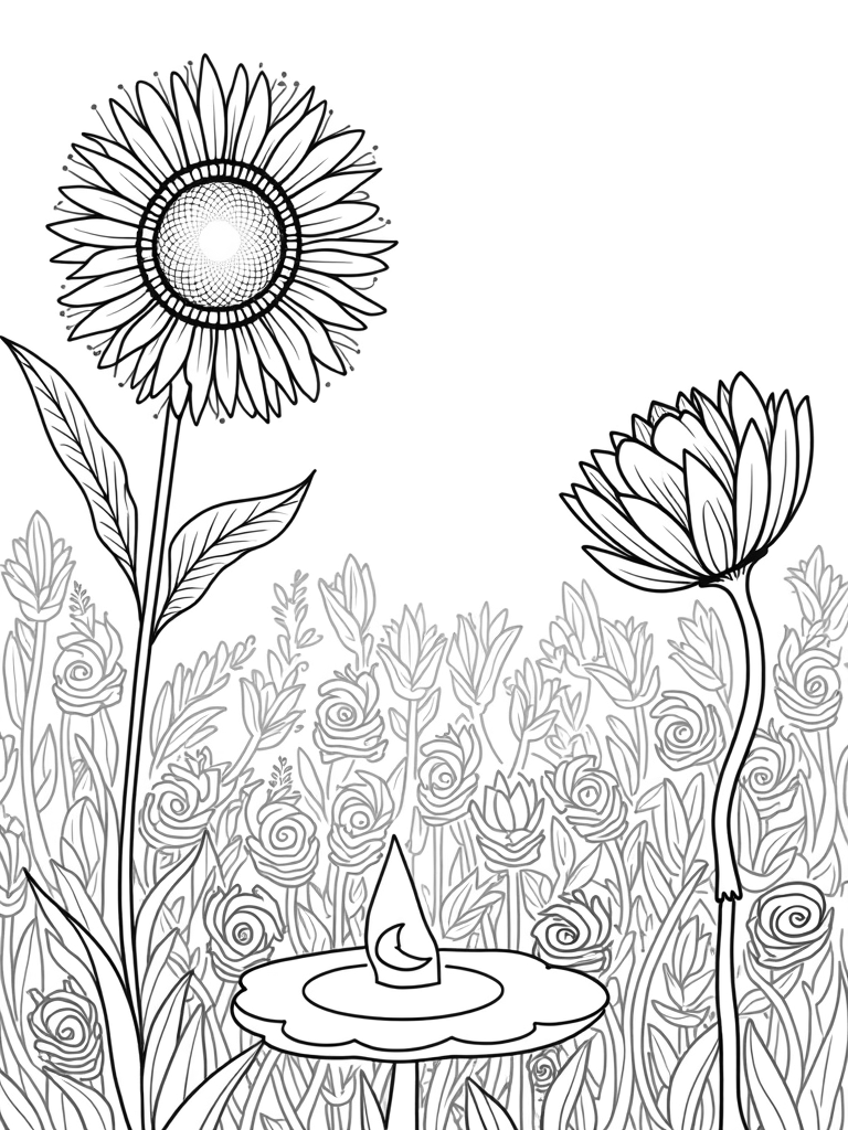 Enormous Flowers in a Whimsical Garden Coloring Page