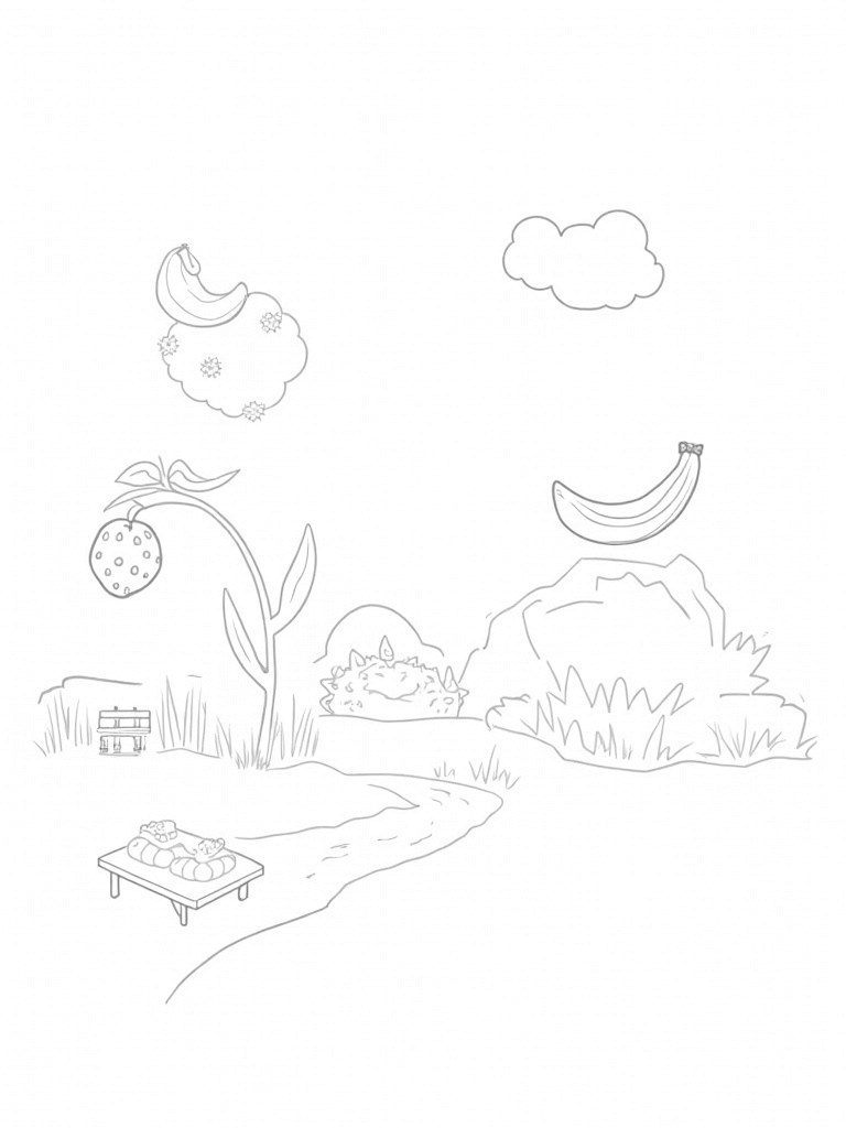 Giant Fruit Forest with a Cupcake Picnic Table Coloring Page