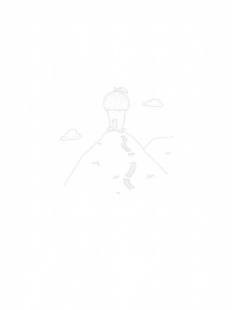 Imagine a world where fruits are as big as houses! In this coloring page, you’ll find a giant watermelon that serves as a cozy cottage, with its green rind acting as a roof. Nearby, a delicious river of chocolate flows lazily, bordered by smooth caramel banks. Look closely, and you’ll spot fluffy marshmallow boulders scattered along the shores, just waiting to be colored.