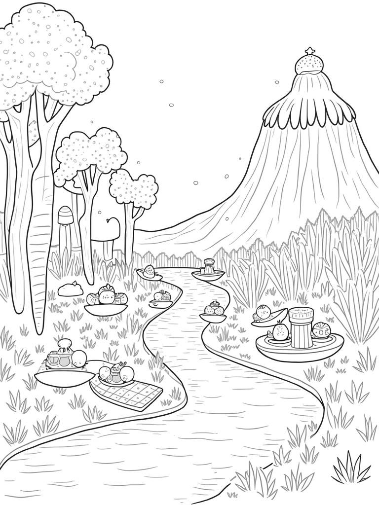 Giant Vegetable Garden with Chocolate River Coloring Page