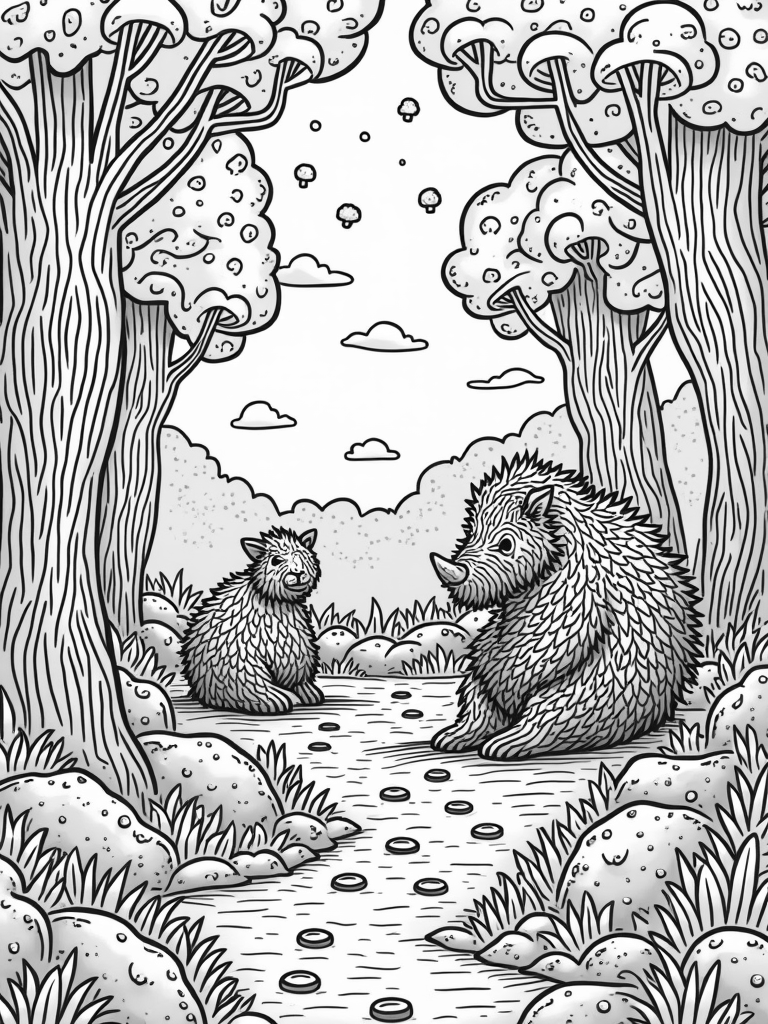 Giant Gruffalo in a Whimsical Forest Coloring Page
