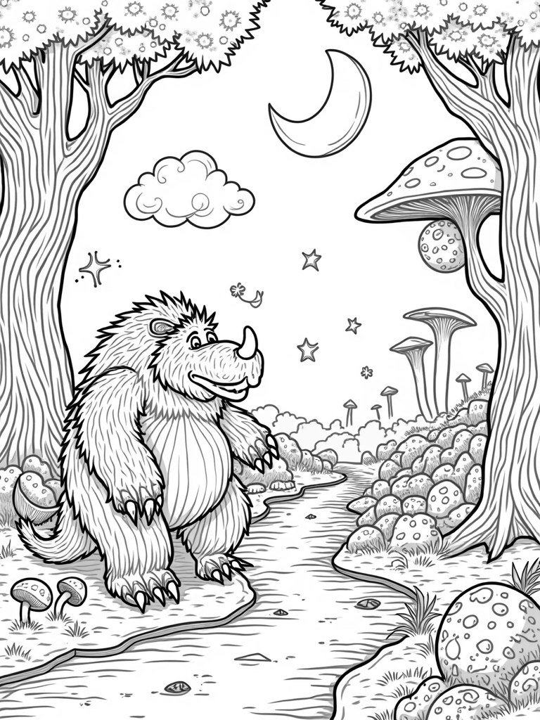 Gruffalo by the Winding Stream in an Enchanted Forest Coloring Page