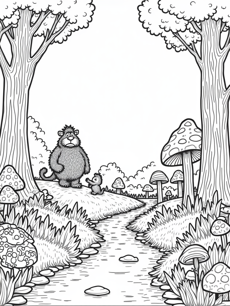 Gruffalo in a Magical Forest Clearing Coloring Page