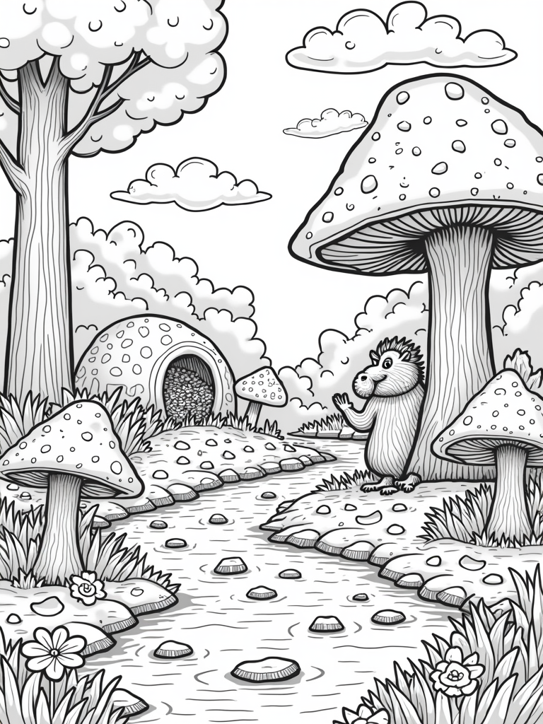 Gruffalo in a Mushroom Forest Clearing Coloring Page