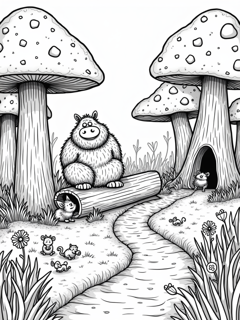 Gruffalo in a Mushroom Wonderland Coloring Page