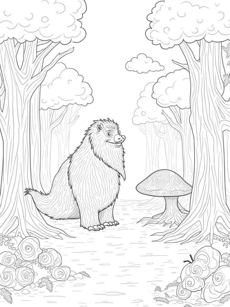 Gruffalo-Shaped Rock in a Twisted Forest Clearing Coloring Page