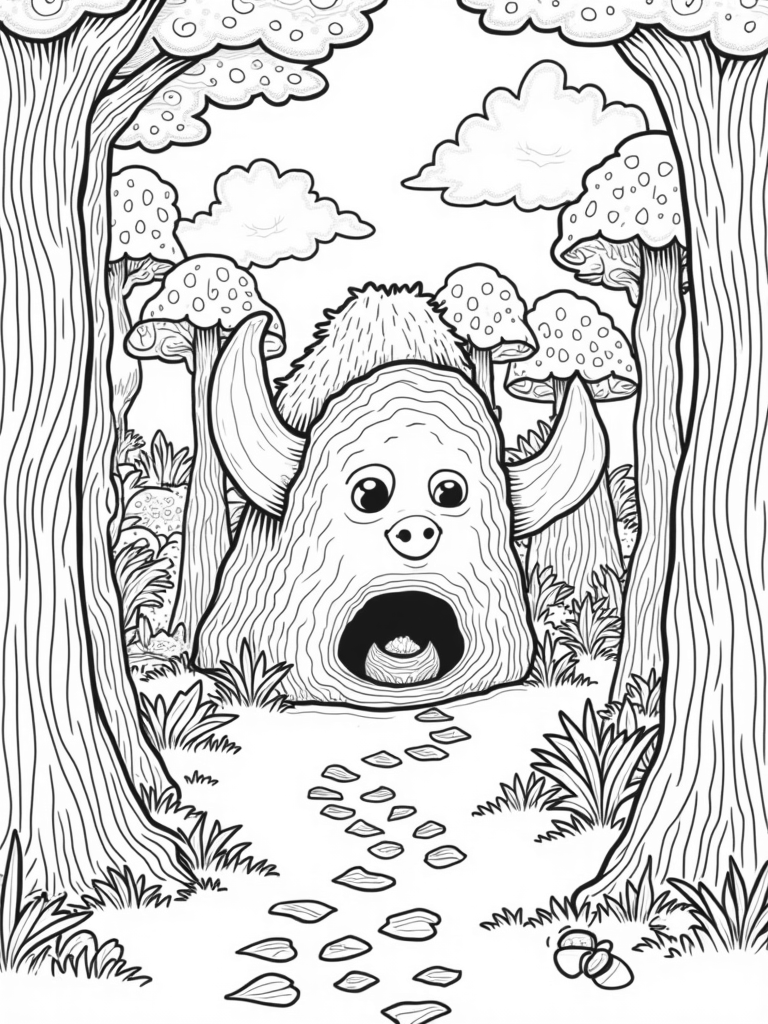 Gruffalo's Face in a Whimsical Forest Coloring Page