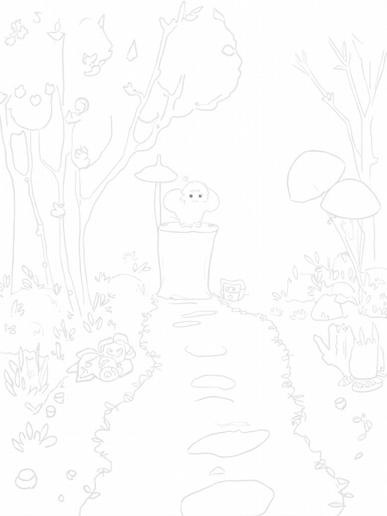 Above the scene, intricate vines hang gracefully from the branches, creating a cozy canopy. In the background, a winding path invites you to wander deeper into the forest, lined with quirky stones that look like fun creatures. Just think about the stories these woods could tell! Coloring this page will let your imagination run wild while you bring this enchanting forest to life.