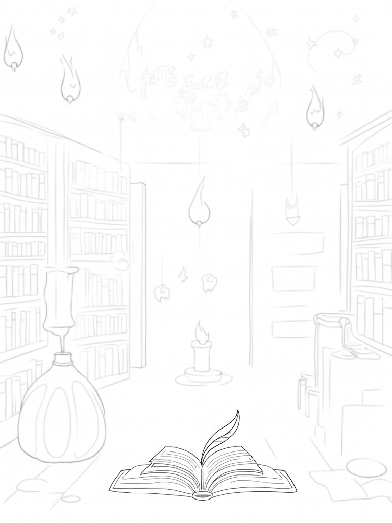Check out this free, printable coloring page of an enchanted library, complete with a bubbling cauldron and floating candles. Perfect for Harry Potter fans, it's a great way to spark creativity while coloring!